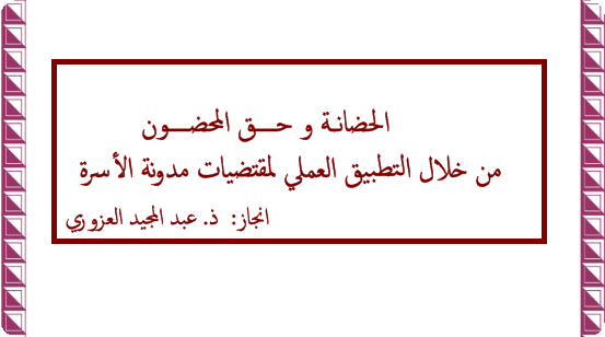 الحضانــة وحــــق المحضــــون من خلال التطبيق العملي لمقتضيات مدونة الأسرة ذ عبد المجيد العزوزي