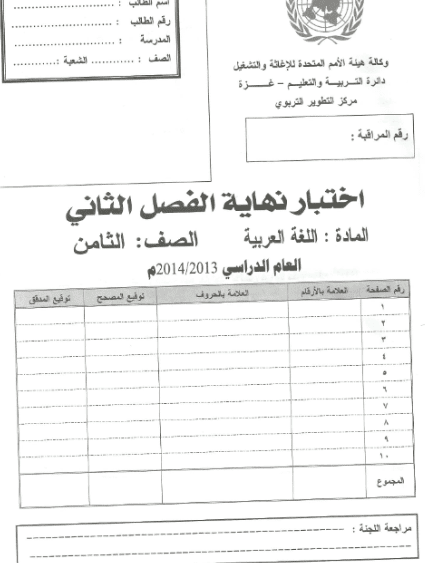 اختبارات لغة عربية للصف الثامن نهاية الفصل الثاني 2008 2014 المكتبة الفلسطينية الشاملة