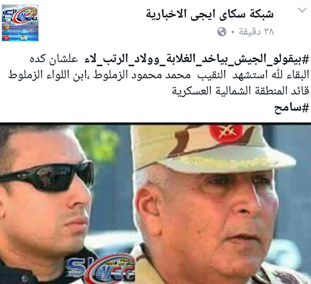 شبكة سكاى ايجى الاخبارية Ar Twitter البقاء لله استشهد النقيب محمد محمود الزملوط ابن اللواء الزملوط قائد المنطقة الشمالية العسكرية